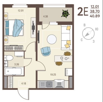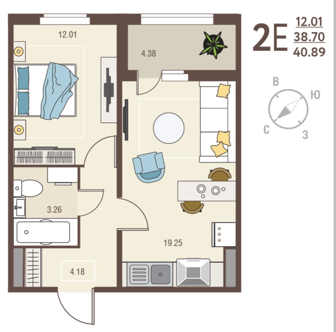 | Площадь, кв.м. | 40.89 |